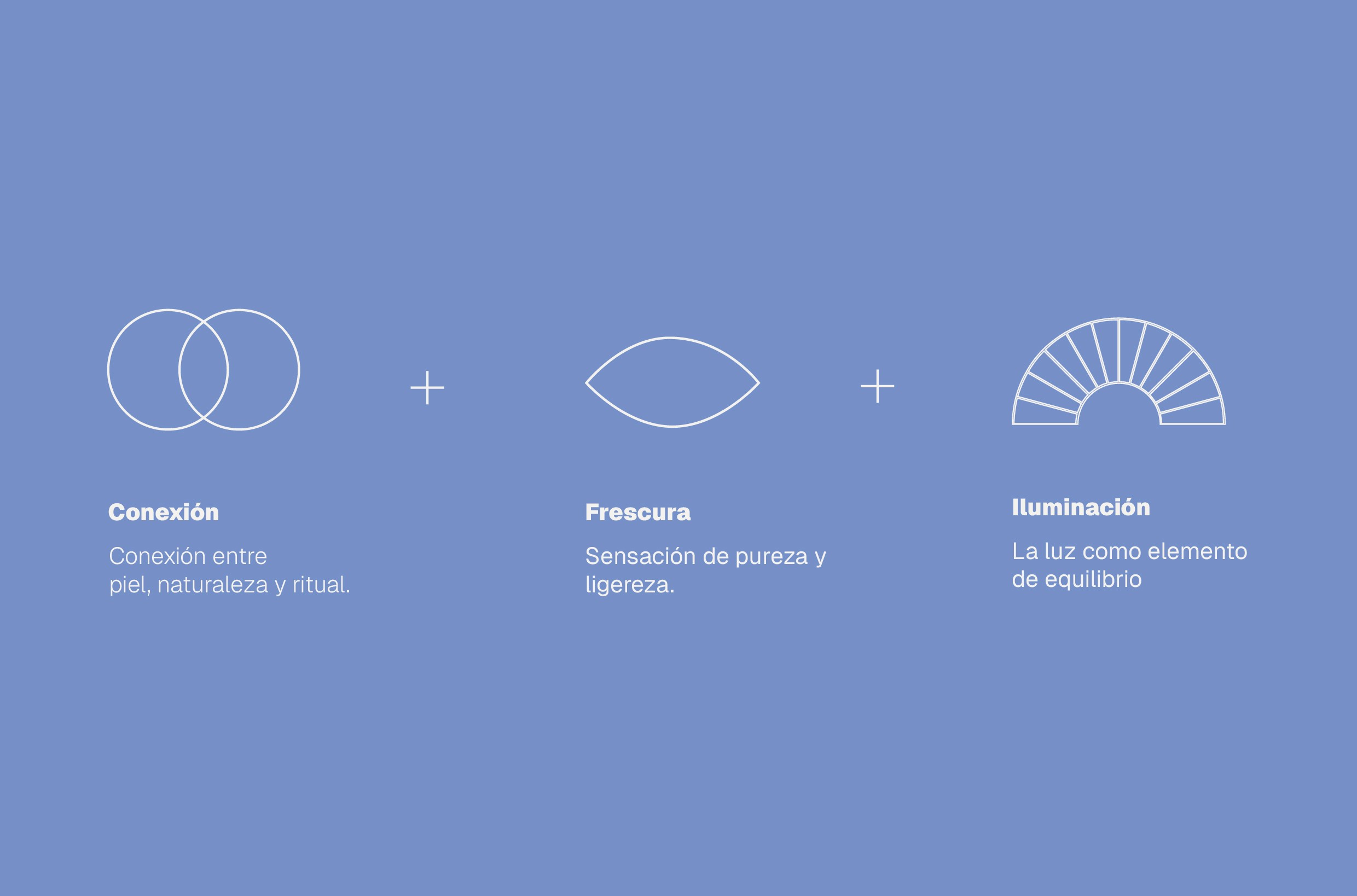 The main challenge was to design an icon that did not rely on passing trends or literal symbols, but instead condensed abstract concepts such as freshness, connection, and light into a simple, recognizable, and versatile form. Additionally, the symbol needed to function as the central axis of the brand system, adaptable to multiple applications and scalable over time.